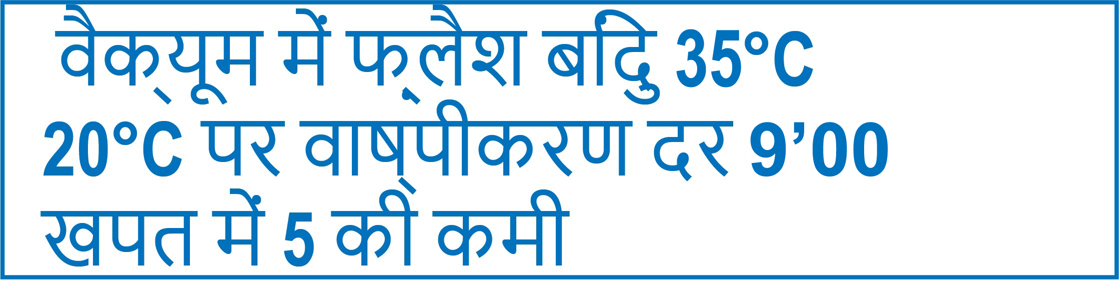 यदि वैक्यूम डिस्टिलर का उपयोग किया जाता है तो आसवन बिंदु को लगभग 30% तक कम किया जा सकता है। आसवन तब कुल और अत्यंत तीव्र होता है, 90°C पर।